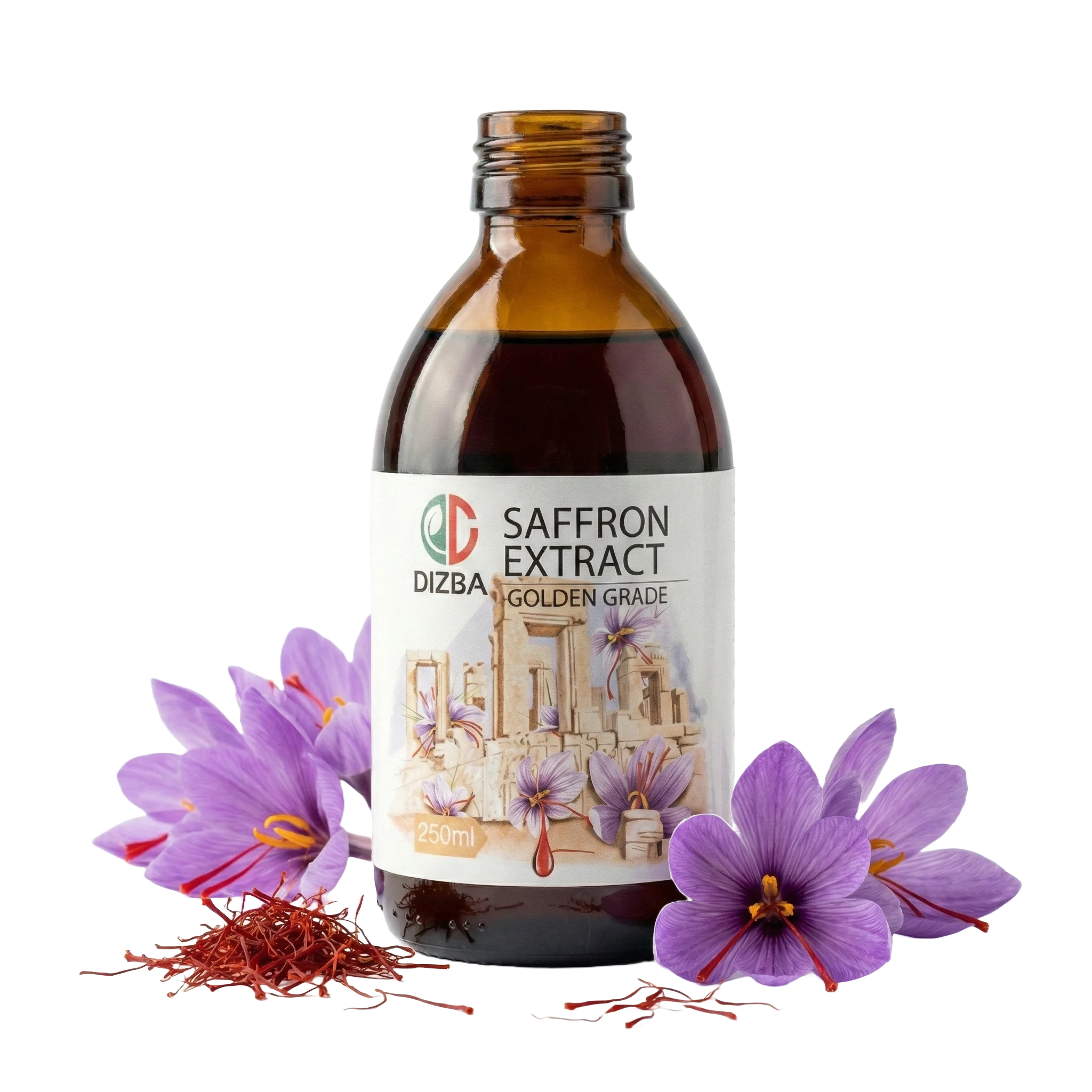 DIZBA Saffron Extract is a potent liquid derived from premium saffron using ultrasonic wave extraction. Boasting a 95% efficiency in retaining active compounds, this extract serves as an ideal ingredient for pharmaceutical, nutraceutical, and high-end culinary purposes
